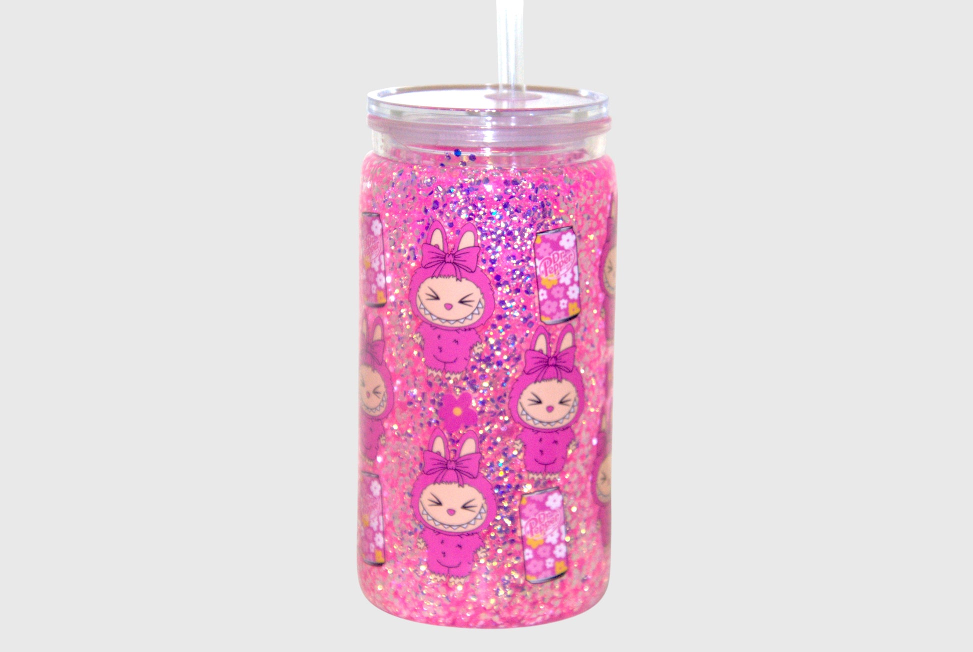 16oz Acrylic Tumbler with straw- Glitter may vary to photo (Glitter will be matched to theme of wrap due to availability). Great Gift can also be used as a makeup/ pen holder.