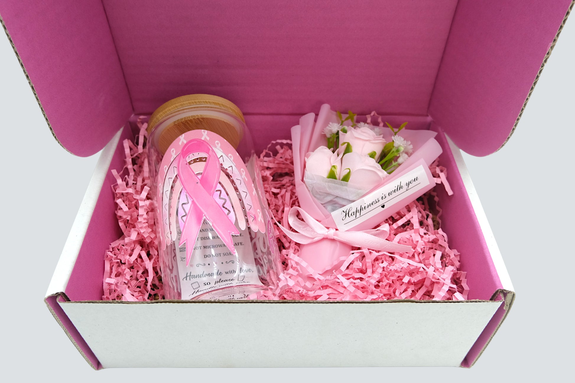 Glass Tumbler (16oz) with Transfer, Small Artificial Flower Posy. Presented in a Gift Box